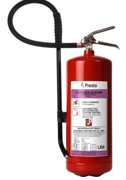 Presto Brannslukningsapparat LB6 er et brannslukningsapparat som kan slukke branner i elektrisk utstyr som inneholder litium-ion-batterier. Brannslukningsapparatet er utstyrt med en slokkelanse som lar deg komme nær brannen og fordele slokkemiddelet jevnt med små vanndråper. Tømmetiden er lang og slokkemidlet er en svært effektiv væske som på grunn av lav overflatespenning raskt kan trenge inn i det brennende materialet og slukke det ved avkjøling. Rundt batteriet er det andre materialer som kan antennes av batteriet og som også må slukkes og avkjøles.