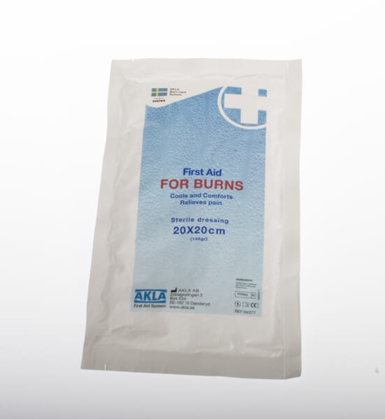Brannbandasje til akutt behandling av brannskader. Gir øyeblikkelig smertelindring og nedkjøling, og minimerer risikoen for at brannskaden sprer seg i vevet.