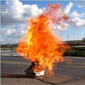 Opplæringsmodulene lar deltakerne øve på hvordan de identifiserer de forskjellige branntypene: Klasse A, B, C, D eller F branner. I dette tilfellet er det en klasse B brann.