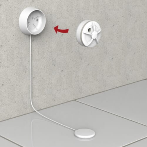 Cavius veggbase / monteringsbase med sensor. Tilbehør til Cavius vannlekkasjevarsler. For installasjoner med risiko for oversvømmelse eller for installasjoner med vanskelig tilgang. Plasser Cavius vannlekkasjealarm i basen på veggen og sensoren på gulvet der du ønsker å oppdage lekkasjer.