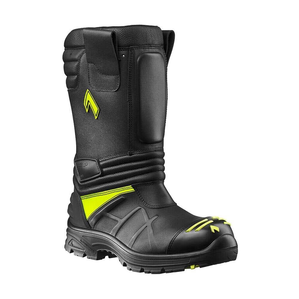 Lett gummi/PU-såle i sportsstil med solid vei-/ulendt terrengprofil og forbedret tå-til-hæl-støtte; slitesterk med utmerkede antiskliegenskaper - selv i kaldt vær. Den lette PU-støtdempende kilen gir ekstra gåkomfort og utmerket termisk isolasjon. Den flammesikre yttersålen er ikke-merkende i henhold til EN 15090:2012 og gir utmerket motstand mot varme, olje og drivstoff. Dens knallgule signalmerker er synlige selv gjennom tykk røyk.