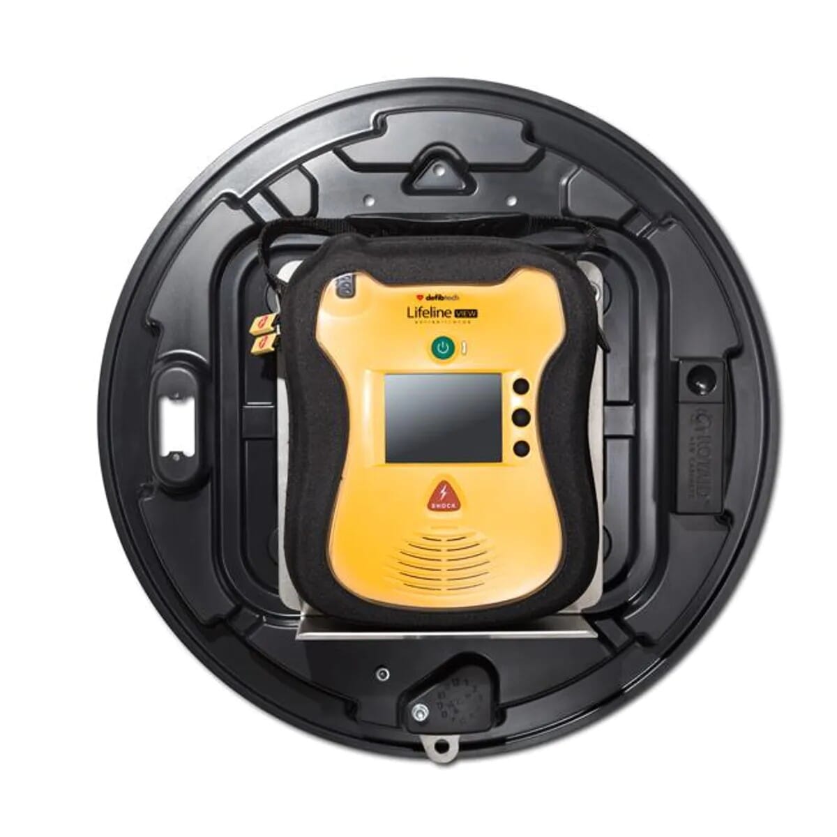 Enkelt og kompakt hjertestarterskap i polykarbonat med alarm. Rotaid har utviklet skap som er svært enkle å åpne, som er svært solide og som i tillegg har plass til alle typer hjertestartere